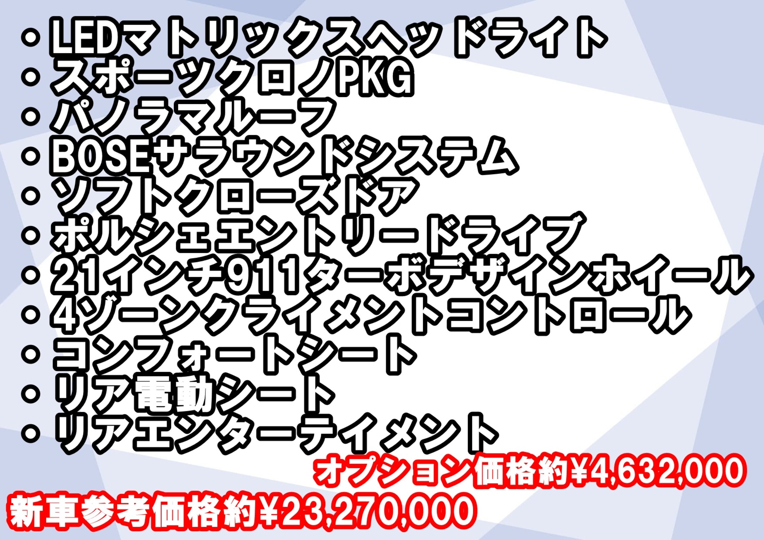 スポーツクロノPKG&21インチ911ターボデザインホイール&リアエンターテイメントなど希少なオプションも多数装備されたパナメーラ4Sエグゼクティブになっております!